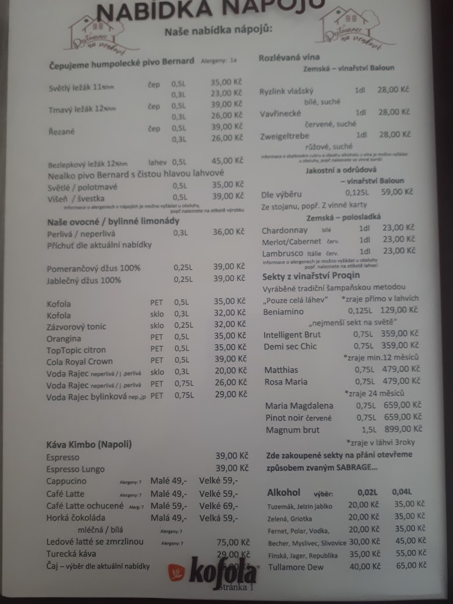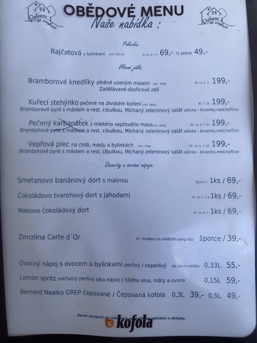 Restaurace na venkově offers a straightforward and welcoming menu that reflects the relaxed, countryside atmosphere of Herálec u Havlíčkova Brodu. The selection focuses on comforting, hearty dishes alongside simple but thoughtfully prepared drinks, making it a place to enjoy an unhurried meal any time of the day.