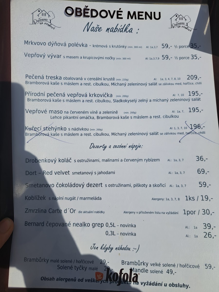 Restaurace na venkově Menu