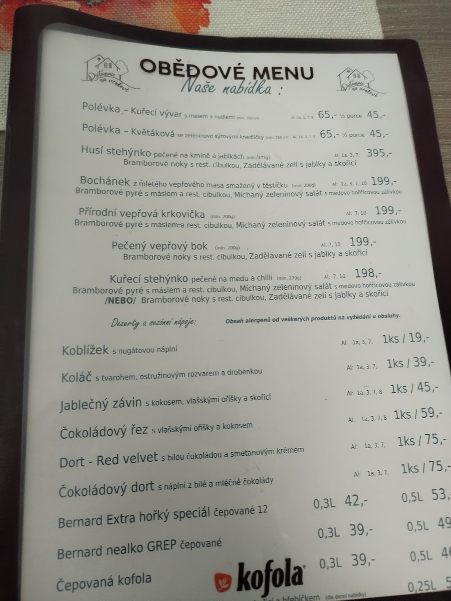 On the menu, you’ll find local favorites like Kuřecí Stehno S Bramborovou Kaší Obloha (chicken thigh with mashed potatoes and a side) and Pečené Řízečky S Bramborovou Kaší (baked schnitzels with mashed potatoes), offering classic tastes that fit the vibe of a cozy countryside kitchen. For lighter fare, salads such as the Salát S Grilovanou Bagetkou provide a fresh and simple option.
